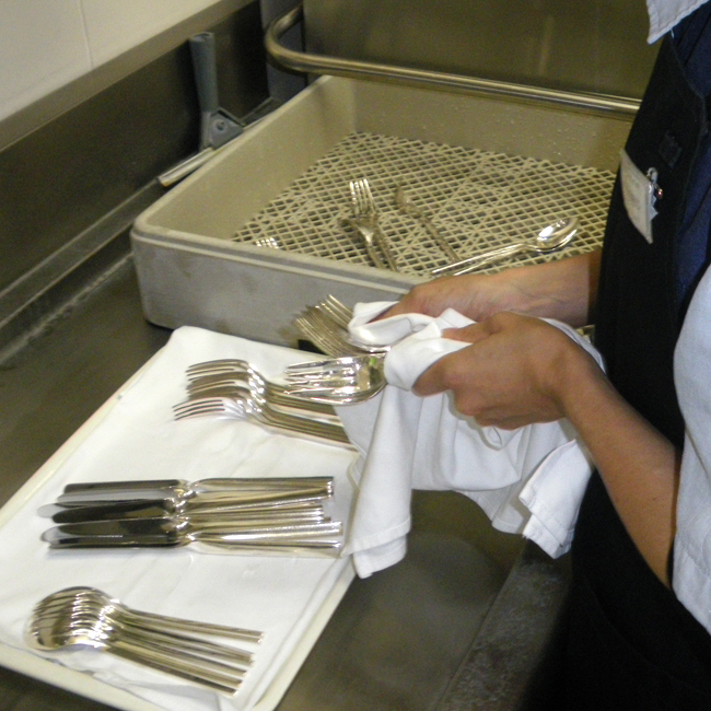 チャーフィング・プラッターなどのシルバー類の脱酸化処理、磨き、また陶器の漂白などの管理を行なっております。